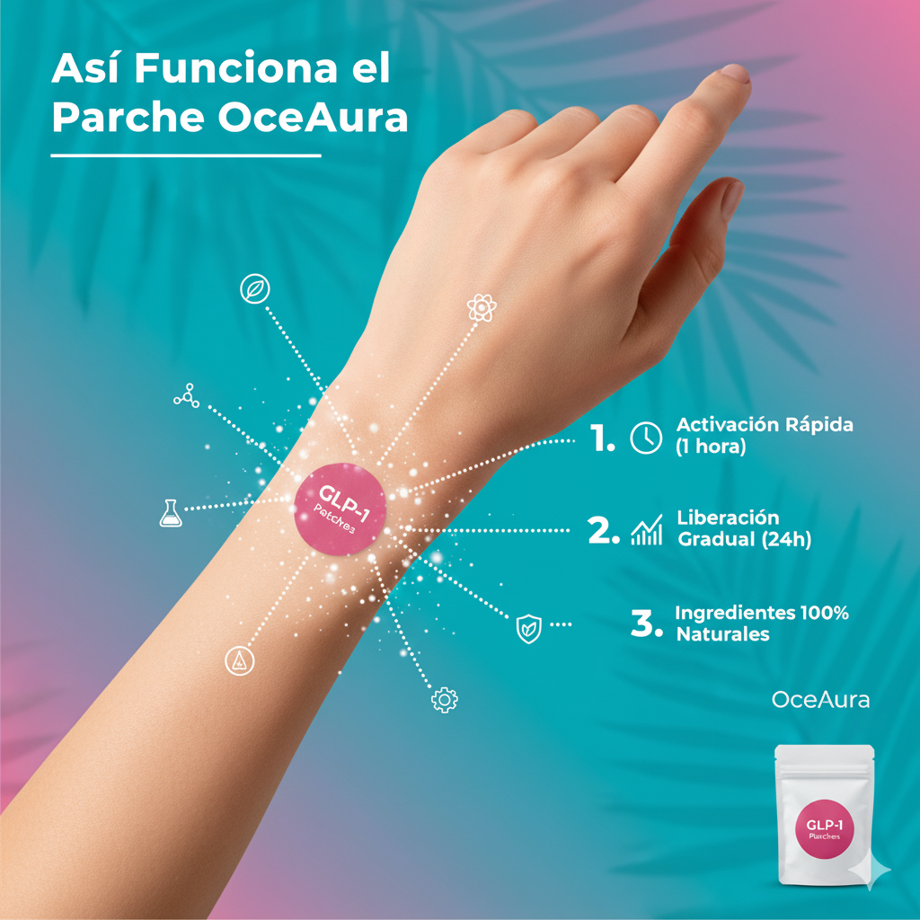 Los Parches OceAura™ son la alternativa moderna y natural para apoyar tu control de peso sin necesidad de tragar cápsulas ni seguir dietas extremas. Solo aplica un parche al día y deja que sus ingredientes botánicos actúen de forma gradual, ayudándote a mantener un estilo de vida equilibrado y sin complicaciones.